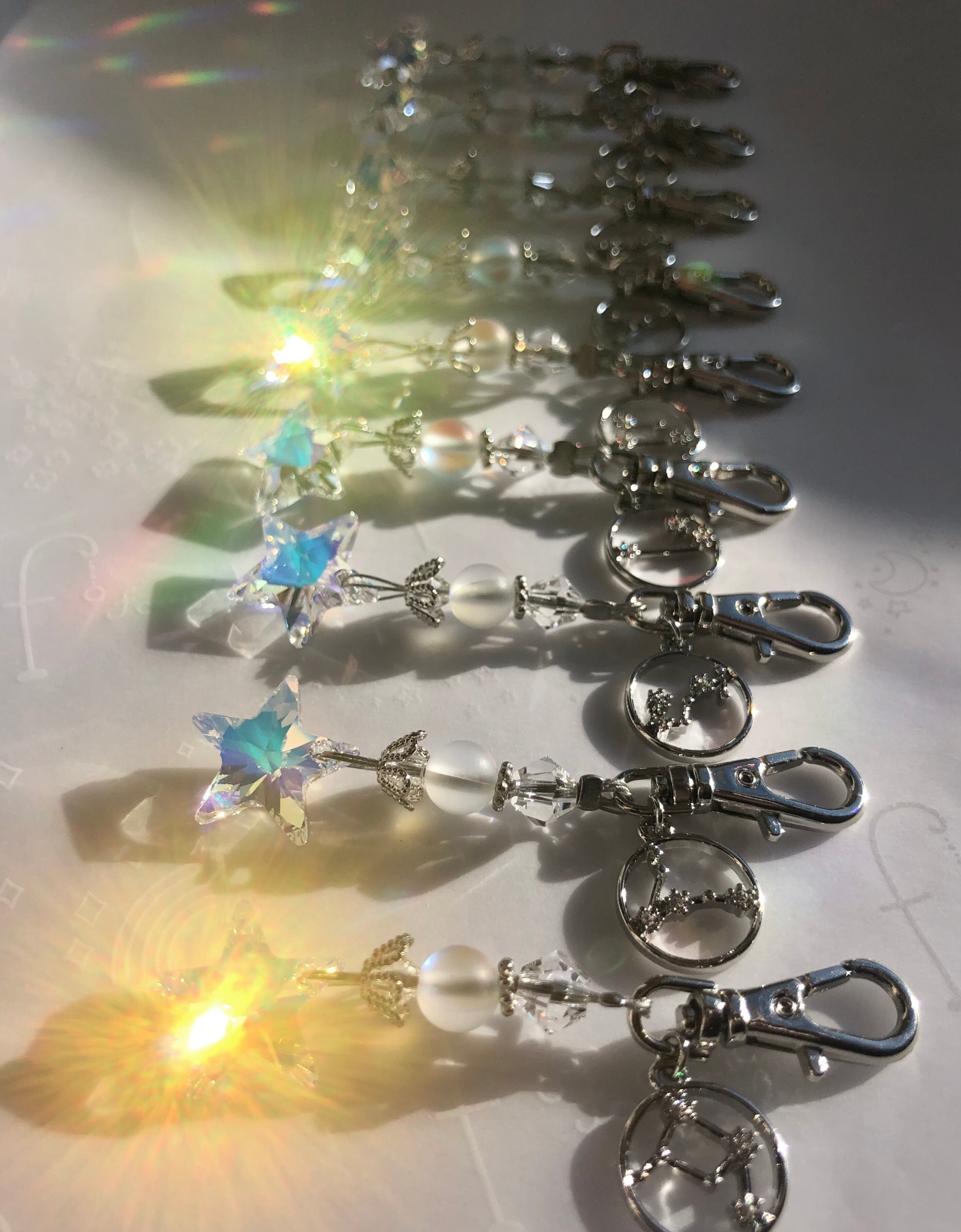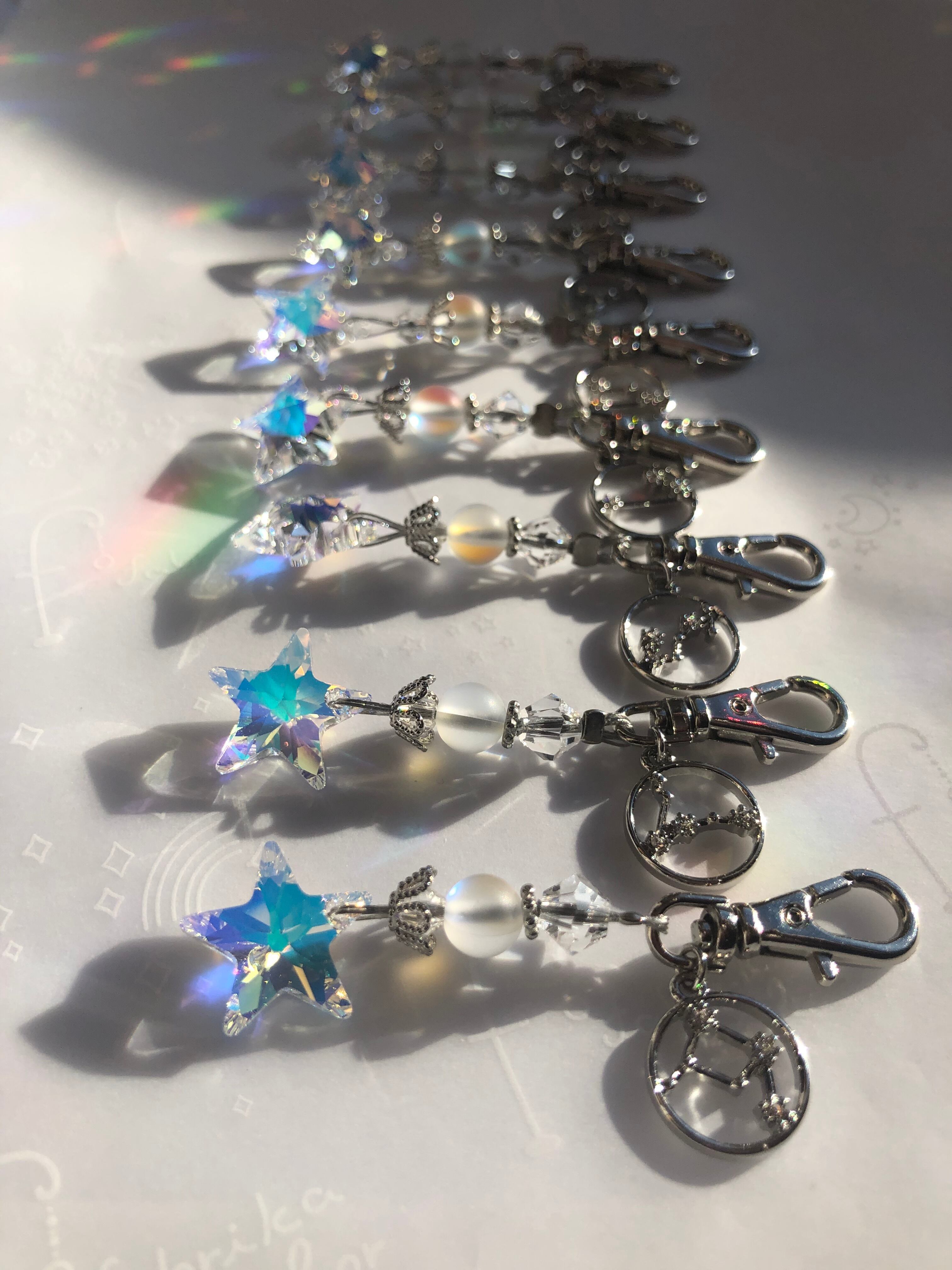 チャーム1本につき1個、お選びいただいた12星座の星パーツがついています。