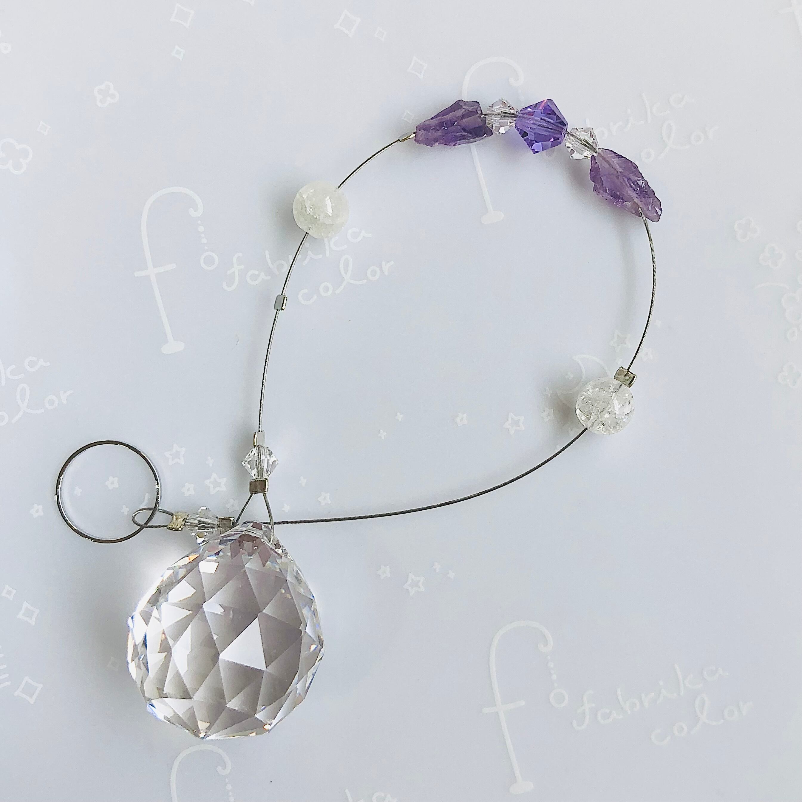 アメジストは不安や緊張を和らげ、冷静に物事を判断できるサポートをしてくれると言われる石。クリスタルガラスからの虹色の光と、美しいパープルに穏やかな癒しと幸福感を得ることができることでしょう。